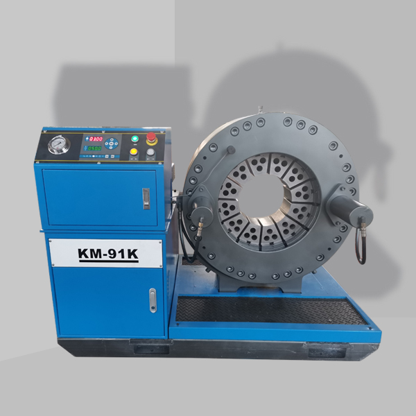 KM-91型系列縮管機,公司技術(shù)人員針對環(huán)形機加潤滑油不方便這一情況,在機頭上設(shè)計增加了自注潤滑油杯,模座上增加了油槽,模座間增加了彈性樹脂層,防止接頭上的鋅層脫落劃傷工作錐面和缸筒,考慮到現(xiàn)在扣壓時異型接頭較多這一現(xiàn)象,增加了機器的收擴量和通過能力。新型機頭支架的選用改變了機頭和支架長期焊接導(dǎo)致缸筒變形等一系列弊端。